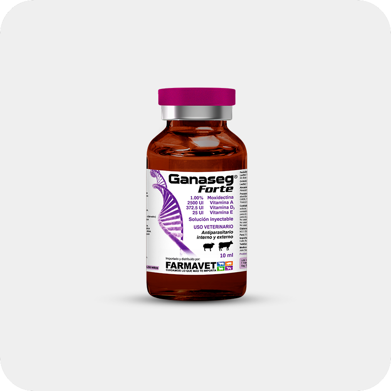 Bovinos: 1 ml de GANASEG FORTE por cada 50kg de peso vivo.